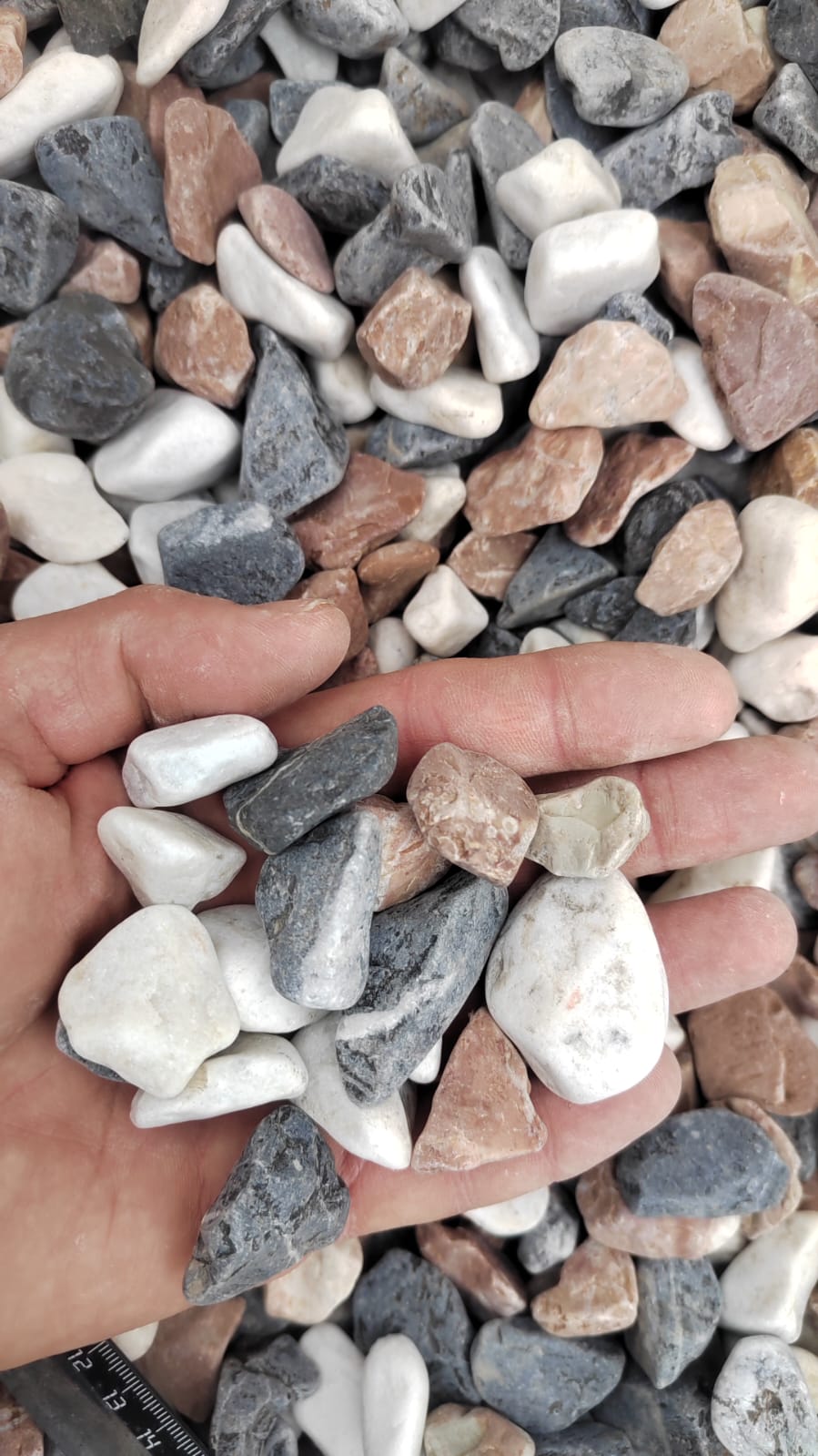 Мраморная крошка (щебень галтованный микс:белый-зеленый-розовый) фр.20-40 мм.