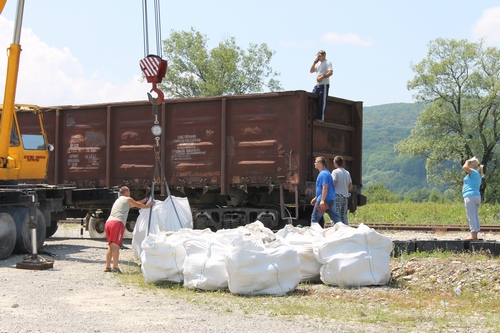 Валуны размером до 400 мм привозят в биг-бэгах. Валуны большим размером привозят навалом в фурах. В последствии их выгружают спецтехникой при использовании тн чалок.